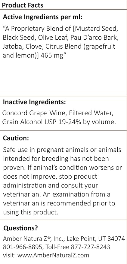 Amber NaturalZ Vibactra Plus Herbal Supplement for Dogs, Cats, Birds, Guinea Pigs, and Rabbits | Herbs for Immune Health and Yeast Balance | 1 Fluid Ounce Glass Bottle