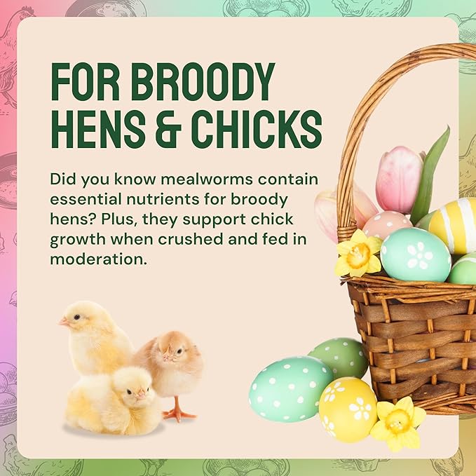 - Quality Assurance: Our dried mealworms for chickens go through strict quality checks and are quick-dried for crispness. These meal worms for chickens are a top pick for poultry and pets. Also suitable as squirrel food, these chicken treats for laying hens are sure to please