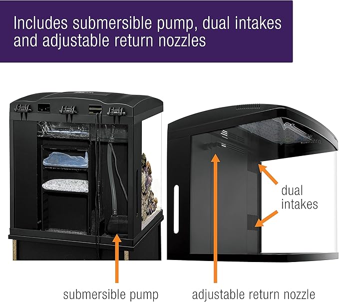 - π GREAT FEATURES β Includes quiet submersible pump, dual intakes and adjustable return nozzle. Compatible with all existing BioCube accessories. Fish, corals, substrate and dΓ©cor are sold separately.