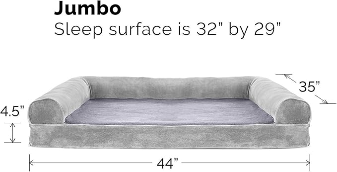 Furhaven Orthopedic Dog Bed for Large Dogs w/ Removable Bolsters & Washable Cover, For Dogs Up to 95 lbs - Faux Fur & Velvet Sofa - Smoke Gray, Jumbo/XL