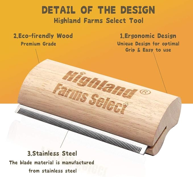 Deshedding Grooming Tool for Dogs, Cats & Horses, Ergonomic Design Wood Groom Brush, Professional Pet Groomer, Painlessly Remove for Short & Long Hair, Fur & Dirt - 5 Inches