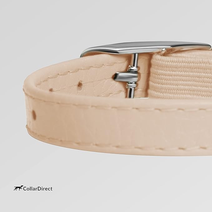 CollarDirect Leather Cat Collar, Kitten Collar with Removable Bell Black Blue Red Orange Lime Green (6-7 Inch, Beige)