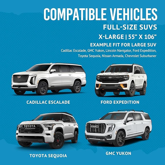 - Versatile Fit: Universal fit and unique design cargo & trunk liner measuring at ( 55" x 106" ) inches. DOES NOT EXTEND FULLY UP TO THE WINDOWSβSEE IMAGES AND MEASUREMENTS FOR ACCURATE COVERAGE DETAILS. Bulldogology designed pet cargo seat covers to install and remove in under 30 seconds. Secure the covers with easy to use durable headrest adjustable straps, keep covers in place with moisture protection non-slip silicon backing. Each feature was manufactured for ease of use and added versatility.