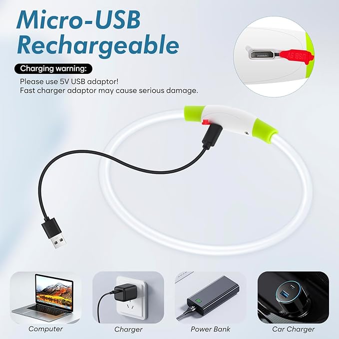 - ★Efficient and Convenient Lighting for Your Pet with the Rechargeable LED Dog Collar: The LED Dog Collar features multiple flash modes, including steady glow, quick flash, slow flash, and off, offering versatile use. The collar light is conveniently recharged with a USB cable after use, making it an energy-saving and convenient option for your pet's nighttime adventures.One charge can last for a week's walks.