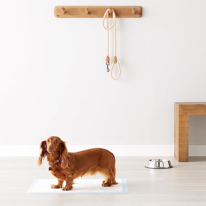 Amazon Basics Heavy Duty Dog and Puppy Pee Pads, 5-Layer Leak-Proof Ultra Absorbent, Quick-Dry Surface, Potty Training, Regular (24x23"), 50 Count, Blue & White