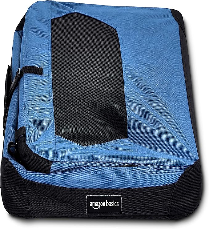 Amazon Basics Folding Portable Soft Pet Dog Crate Carrier Kennel, 26 x 18 x 18 inches, Blue