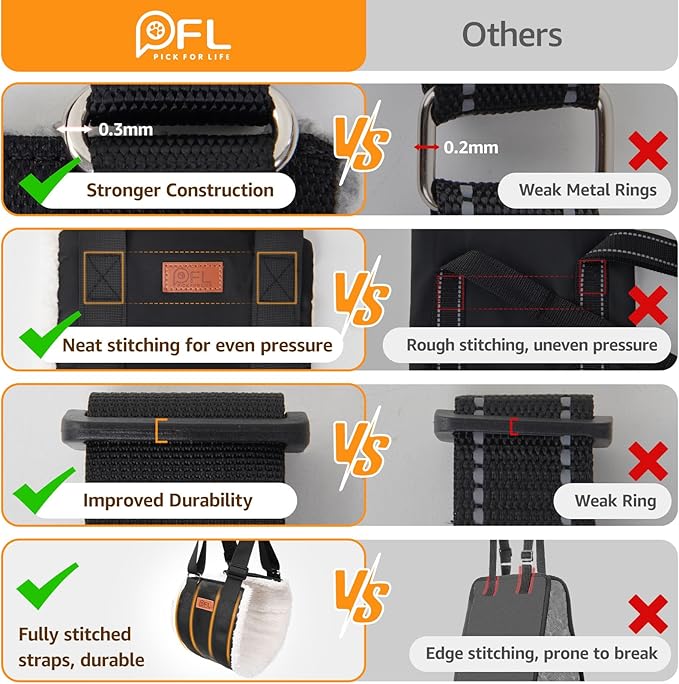 - Lifesaver: The dog carrying harness can pick up the rear end of your fur friend,prevent hip pain and injury caused by aging, support them getting in and out of the car,up and down the steps,help them get up from lying down,stabilize both the gait and spine