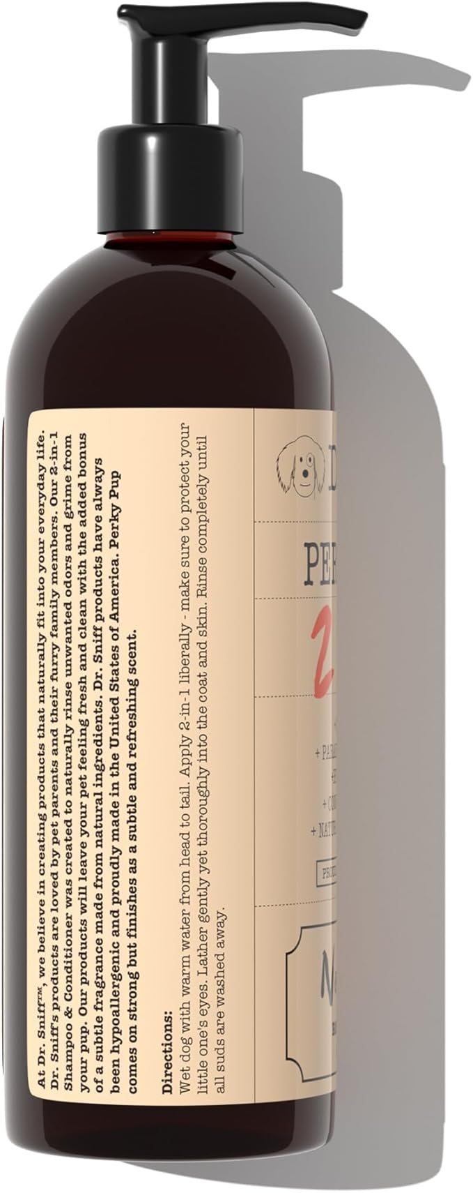 Dr. Sniff 2-in-1 Pet Shampoo & Conditioner, Ultimate Grooming Treatment for Dog & Cat Hair, Freshens Scent, Made in The USA, Perky Pup Scent, 16 Oz