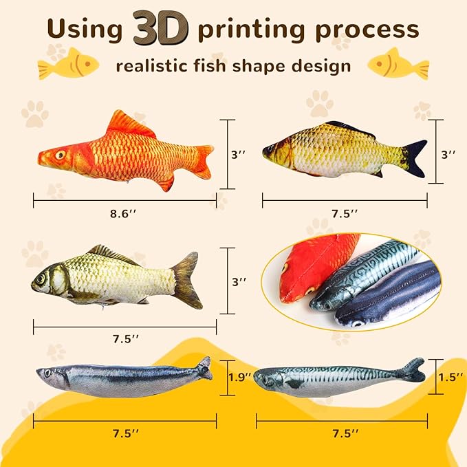 - Design: Using 3D printing process,clear and realistic fish shape design;Your pets will crazy about these catnip fish, you and your cats will get a lot of joy