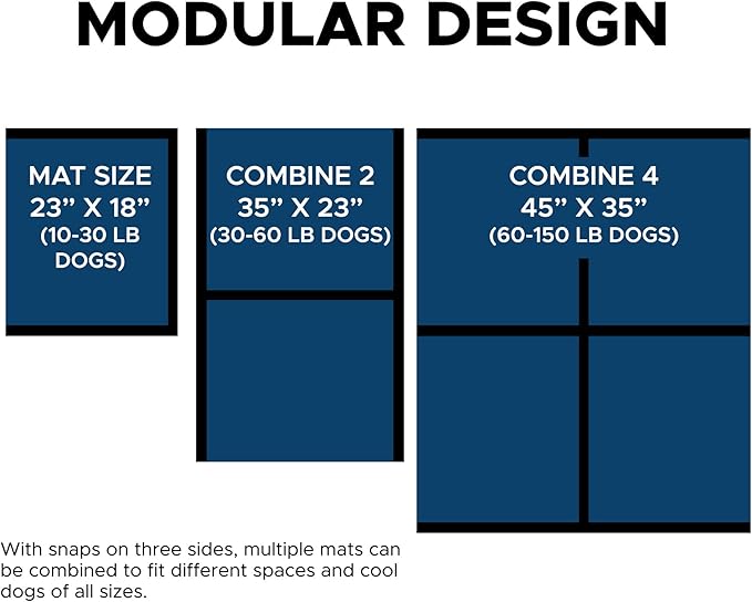 - VETERINARIAN APPROVED: The Cooler Dog Hydro Cooling Mat is made with non-toxic, veterinarian-approved materials and contains no harmful chemicals or gels, only pure water. The rip-stop construction ensures durability for both indoor and outdoor use. Each mat has snaps on three sides to connect multiple mats for larger dogs. To maintain it, machine wash the mat cover as needed.