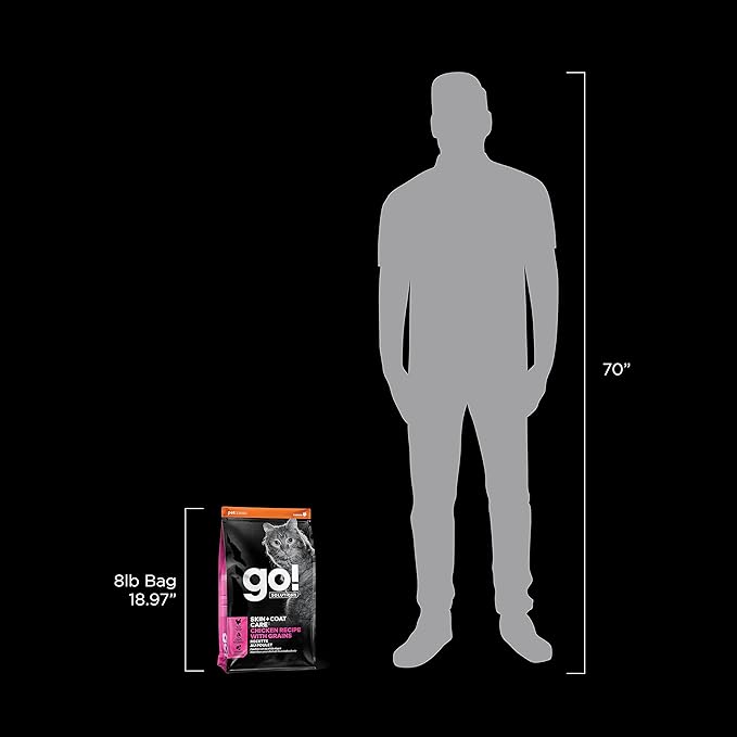 Go! Solutions Skin + Coat Care, Dry Cat Food, Chicken Recipe with Grains, 8 lb Bag