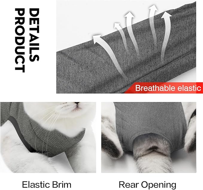 - No More Cones: Our cat recovery suit lets kittens use their litter box with no problem after being spayed or having surgery. It helps cats bounce back to their normal, happier selves.