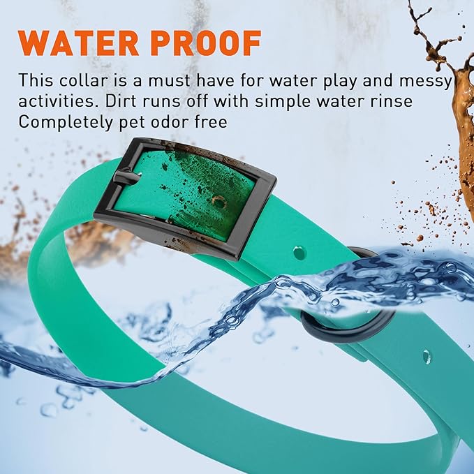 • Free Your Dog to romp in puddles and retrieve from lakes with the Dogline Biothane Waterproof Dog Collar. This water-repellent collar stays dry and odor-free, without shrinking or losing flexibility.