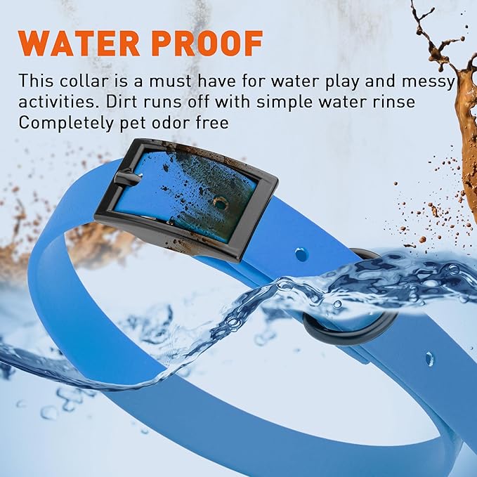 • Free Your Dog to romp in puddles and retrieve from lakes with the Dogline Biothane Waterproof Dog Collar. This water-repellent collar stays dry and odor-free, without shrinking or losing flexibility.