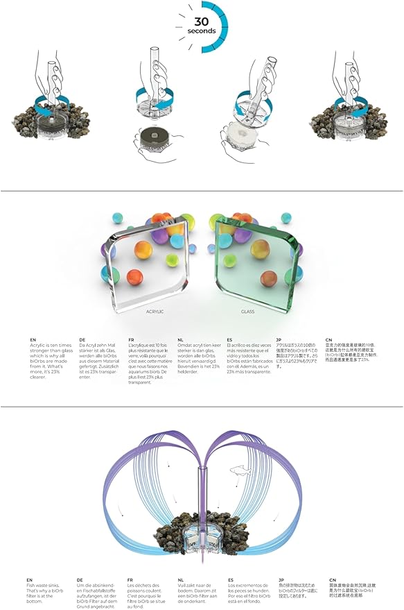 - DURABLE CONSTRUCTION — biOrb aquariums are made from acrylic, which is 10 times stronger, 50% lighter, and 23% clearer than ordinary glass aquariums. Acrylic is also a good insulator, so you don't lose as much heat as you would with a glass aquarium.