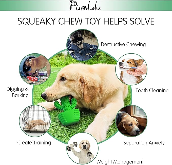 - GREAT WAY TO ENTERTAIN AND PRACTICE DENTAL HYGIENE: The bristles on the dog toothbrush are arranged neatly; Put dog toothpaste into the grooves of the dog toothbrush stick; When dogs chew the toy will effectively clean teeth, and promote your dog's strong jaws; For an added surprise, the base squeaks! Squeaky dog toys create fun sounds provide long-lasting engagement making chewing more exciting for dogs