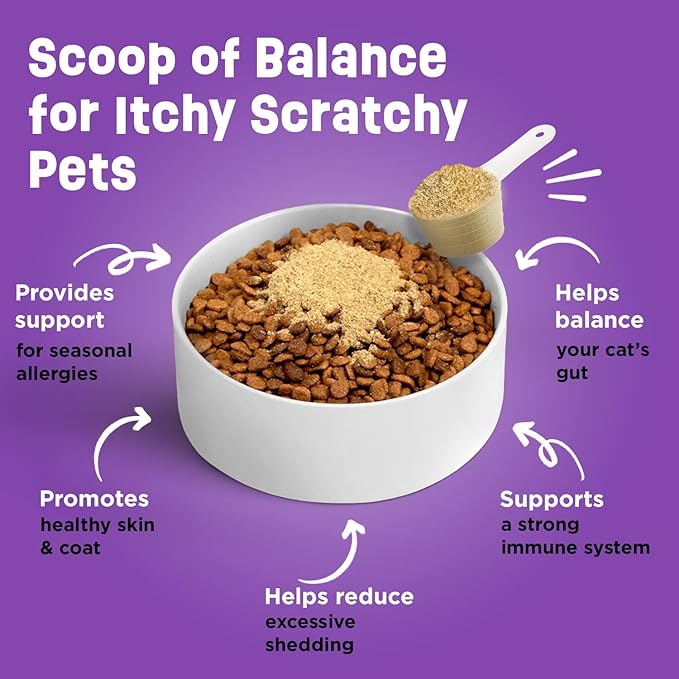 - OMEGA 3 FATTY ACIDS - Helps support good skin and a shiny coat. Omega 3 fatty acids provide skin and immune support for cats with allergies that cause itching, dry skin, shedding and hot spots.