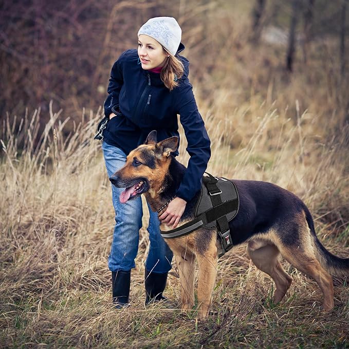 Dogline Dog Harness, Reflective No-Pull Adjustable Vest with Handle, Breathable No-Choke Harness for Small, Medium or Large Dogs Room for Patches Girth 33"-46" in Black