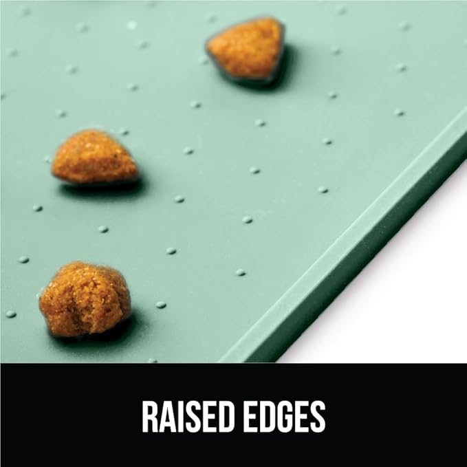 GORILLA GRIP 100% Waterproof Raised Edge BPA Free Silicone Pet Feeding Mat, Dog Cat Food Mats Contain Spills Protects Floors, Placemats for Cats and Dogs Water Bowl, Pets Accessories 28x18 Mint