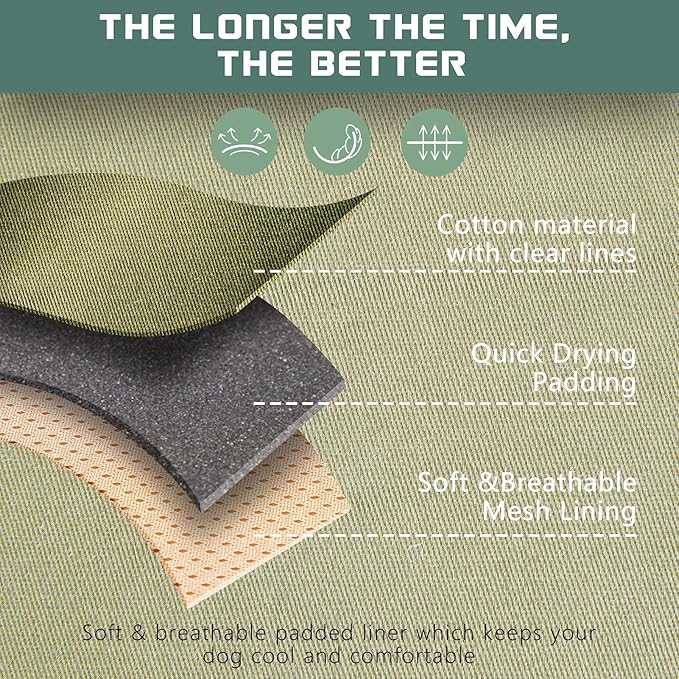 - 🐾DUARABLE & BREATHABLE MATERIAL: All Day Comfort.🐾 The heavy-duty vest made of soft cotton fabric with clear texture for the beautiful appearence. Extra durability and wear-ability, suitable for all field use. The soft padding can protect your dog's skin, while the breathable air mesh keeps your dog ventilated and comfortable. We will protect the comfort and health of the dog together with you.