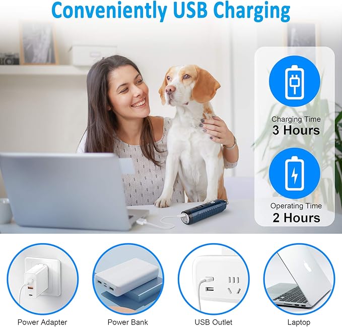 - Rechargeable & Easy to Use: This cordless dog nail grinder comes with a USB cable for charging, it can last 2 hours after a 3-hour charge. The lightweight and ergonomic body design also makes it easier to handle. Easily grind your petβs nail anywhere.