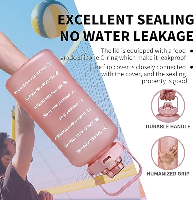 - 💪【Use Note & Purchase Tips】Do not drop it! Not dishwasher safe! Clean it with baking soda and vinegar, Not fill hot water.Not keep water cold. If there is any problem, please contact with us through your order. We will handle it immediately with a best solution for you. Enjoy the reusable tritan gallon water bottle.To be a better you!