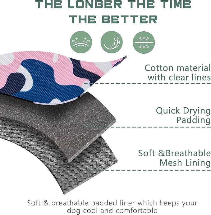 - 🐾DUARABLE & BREATHABLE MATERIAL: All Day Comfort.🐾 The heavy-duty vest made of soft cotton fabric with clear texture for the beautiful appearence. Extra durability and wear-ability, suitable for all field use. The soft padding can protect your dog's skin, while the breathable air mesh keeps your dog ventilated and comfortable. We will protect the comfort and health of the dog together with you.