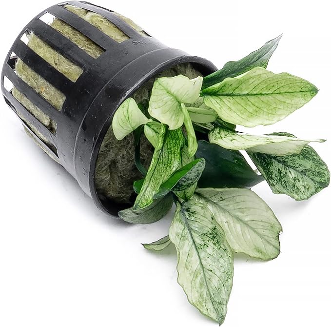 - Ships roughly 1" tall rooted in wool which should be removed prior to planting. Gently squeeze the pot, peel back the wool, rinse, and plant! Keep the rhizomes above your substrate or the plant can begin to rot.