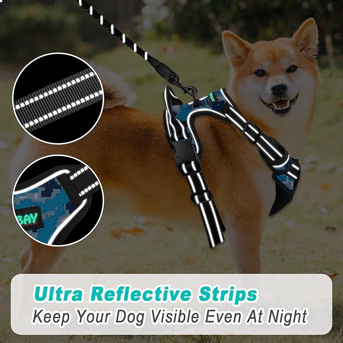 BARKBAY No Pull Dog Harness Large Step in Reflective Dog Harness with Front Clip and Easy Control Handle for Walking Training Running(Blue camo,XL)