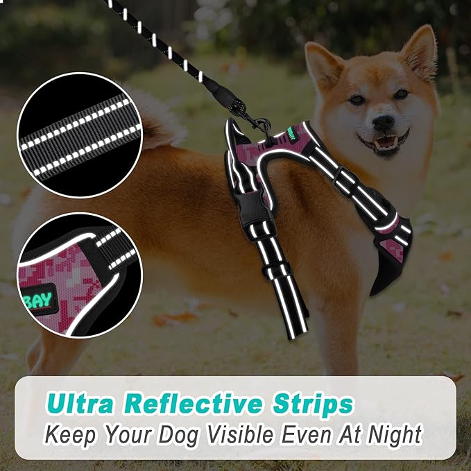 BARKBAY No Pull Dog Harness Large Step in Reflective Dog Harness with Front Clip and Easy Control Handle for Walking Training Running(Pink camo,XL)