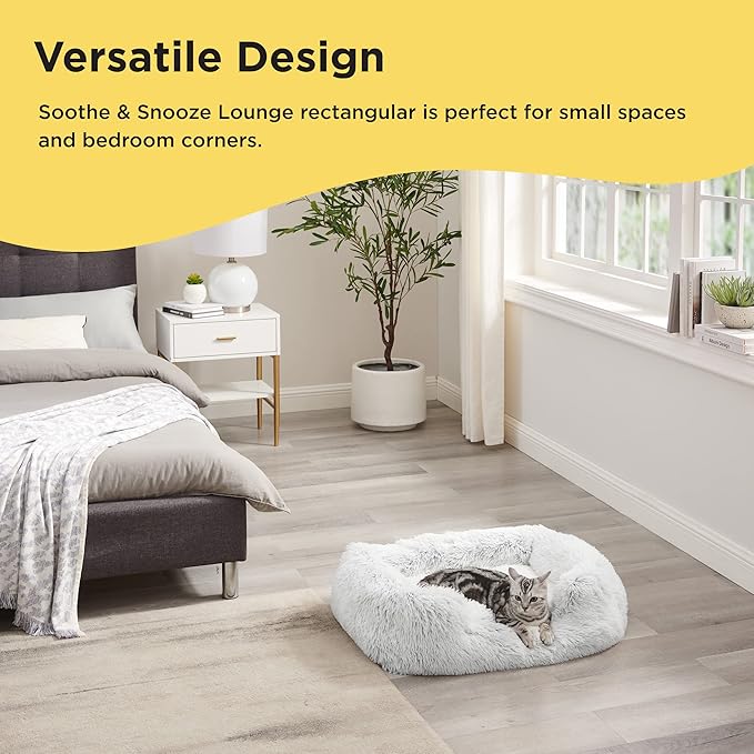 - Lounge in luxurious comfort β the low profile front of this relaxing dog bed allows for easy entry and exit for dogs of all ages and mobility levels, while its rectangular shape is perfect for pets who love to stretch out