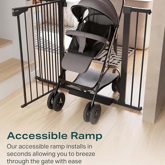 - Enhanced Safety and Two-Way Access – Our extra tall baby gate utilizes a double-lock safety release to keep toddlers from opening the door. It also swings open in both directions with a 90° open and stop and automatic closure for added safety