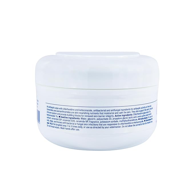 - 𝐇𝐞𝐥𝐩𝐬 𝐌𝐚𝐧𝐚𝐠𝐞 𝐒𝐤𝐢𝐧 𝐈𝐧𝐟𝐞𝐜𝐭𝐢𝐨𝐧𝐬 - These gentle yet effective wipes are medicated with chlorhexidine 2% and ketoconazole 1% to target bacteria, fungi, and yeast.