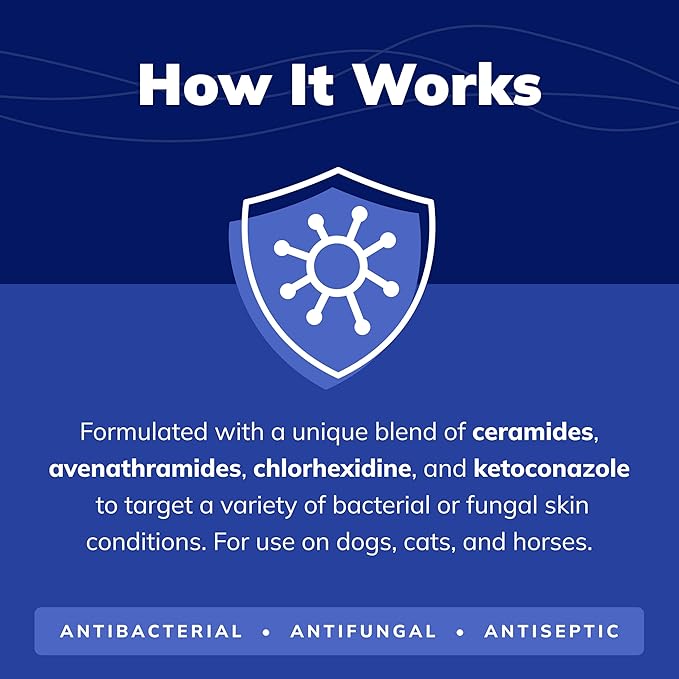 - 𝐕𝐞𝐭𝐞𝐫𝐢𝐧𝐚𝐫𝐢𝐚𝐧-𝐈𝐧𝐬𝐩𝐢𝐫𝐞𝐝 𝐅𝐨𝐫𝐦𝐮𝐥𝐚 - Ideal for dogs, cats, and horses with skin conditions responsive to chlorhexidine and ketoconazole.