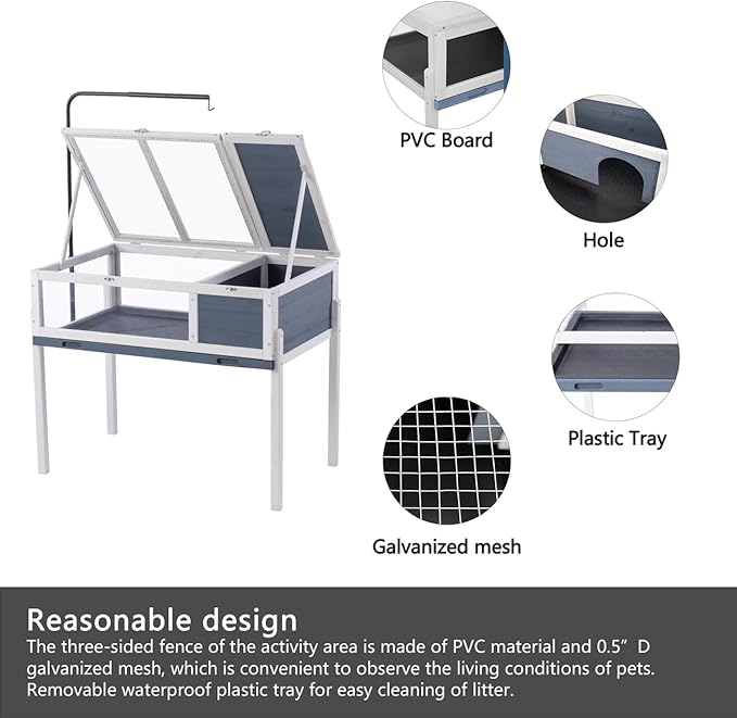 - 🐢Multifunctional Tortoise House: This cage is not only a tortoise cage. The bearded dragon could be a good habitat for other small reptiles, such as guinea, pigs, hamster, hedgehogs, rabbits, chicks, lizards, geckos, tortoise and other small animals etc. Detachable legs can be removed according to your needs, you can also put the cage directly on the table.