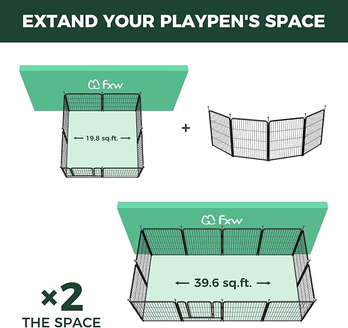 - A win-win solution: The FXW Dog Playpen is designed to bring a win-win solution to you and your lovely dog. Different from a narrow enclosure cage or kennel, the FXW dog pen provides a spacious semi-open activity area specifically for your dog. Your dog will have fun in its safe and sturdy kingdom. Meanwhile, you can take a real break and be truly relaxed without worrying about your beloved pet. Fun, Relaxation and Well-being is the orientation of the FXW team.