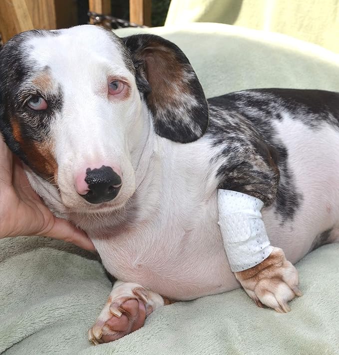 - ADJUSTABLE FASTENING STRAP , SUPER STRETCH & NON-SLIP GRIP: Unique non-slip grip feature assures minimum slippage even on the most active dogs; bandage stays in place.