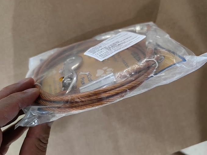 - 【Heavy-Duty Dog Tie Out Cable】Made from heavy-duty steel wire with an anti-rust PVC coating, this durable dog leash cable is built to last. Its double-crimped ends provide extra strength, ensuring it securely holds dogs up to 125lbs.