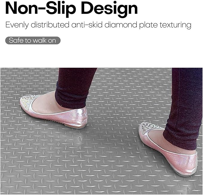 - ☑ Anti-Slip & Floor Protection 】The diamond plate flooring can keep you from slipping on daily walking, at the same time protect floor from spills, dirty and other messes