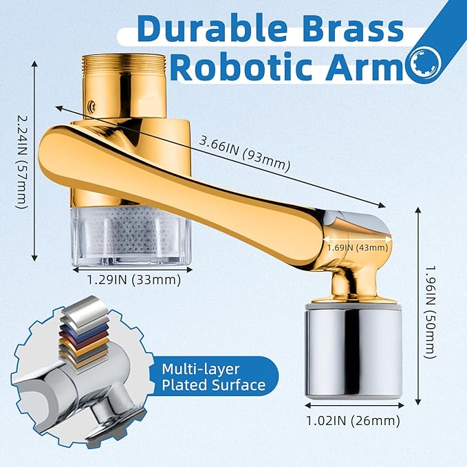 - 【2-Mode Outlet & Space-saving Sink Tap Extender】Simply rotate rubber ring on aerator to switch bubble outlet to power shower mode, fast rinsing off stains on surface of fruits and vegetables. Non-slip design makes operation easier, even with bubbles on your hands. Ball joint on aerator also allows you to change directions quickly. Foldable robotic arm requires small space, won’t be a big clumsy/immovable obstacle in sink. Max Flow Rate:1.2 gpm/min, meet California Energy Commission