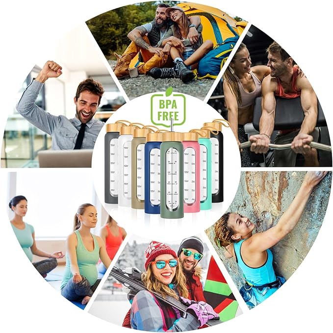 - Stay Motivated - Easily track your water intake throughout the day with tracking directly on your clear glass water bottles with times to drink. Reach your health goals whenever your day takes you with these aesthetic water bottles
