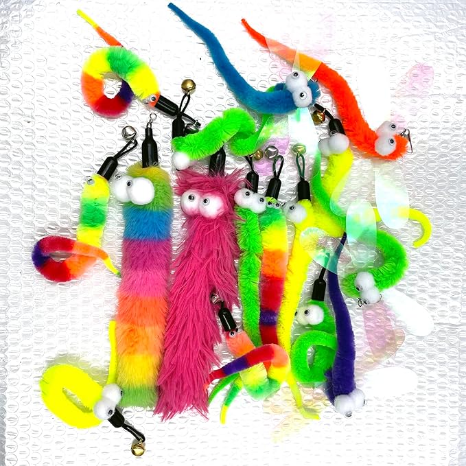 Cat Worm Teaser Toys Wand Attachments Fishing Pole Toy Refill - 16pcs Assorted Cat Worms