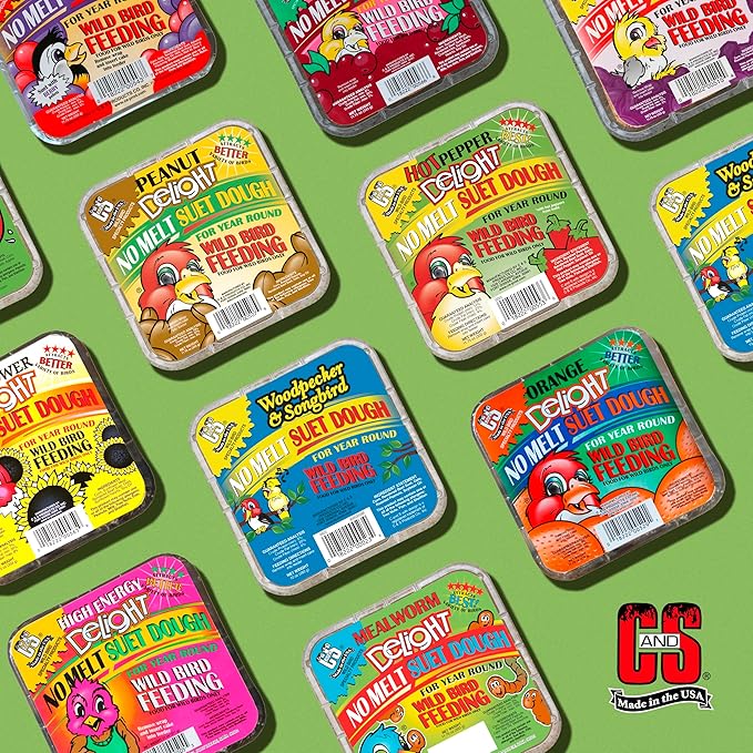 - ECONOMICAL & EASY TO USE compared to traditional seeds. C&S Hot Pepper Delight No Melt Suet Dough combined with a wire feeder offers a great value for today’s wild bird feeding customer.