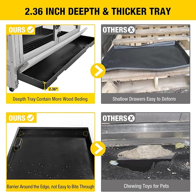 - 2.36 " Plastic Tray: Deepened and thickened plastic drawer to give you enough depth to put hay, special baffles in the four corners to prevent pets from biting in