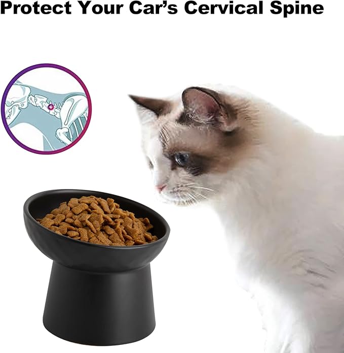 Ceramic Raised Cat Bowls, Elevated Tilted Cat Food and Water Bowls Set, Porcelain Stress Free Pet Feeder Dish for Cats and Small Dogs, Dishwasher and Microwave Safe, Set of 2(Black)