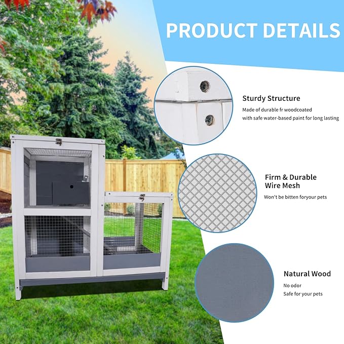 - 【Stable & Durable】100% made of 10mm Finnish spruce panels(NOT CEDAR), with a water-based painting finish, thicker than others guinea pig cages, ensures good sturdiness to use. The wire roof with UV proof panel protect your pets against the sun, rain and snow.