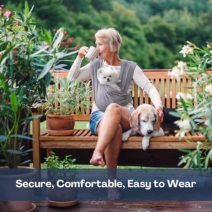 - [SIMPLE SIZE & PERFECT FIT] Please measure your fullest part of your bust and choose your size on the size chart. There are two simple sizes, Regular (S~L) and Plus (XL~3XL). Regardless of your size, our dog carrying sling is designed as small dog carrier up to 20lbs(9kg). The 95% Cotton is extra soft, and the 5% Spandex gives the elasticity which allows our dog sling carrier for small dogs to conform to your pet's shape, ensuring maximum comfort for both you and your pet during use
