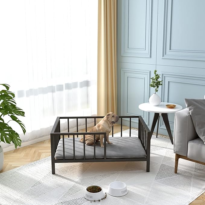 - SOLID STRUCTURE & CHEW RESISTANT - The dog bed frame is made of thick metal pipe, plus solid wood bed board so that the whole bed is extremely strong. The metal pipe also ensures the dog bed will not be damaged by any pet's biting. In addition to the mat, we believe this pet bed frame will accompany your pet for a lifetime.