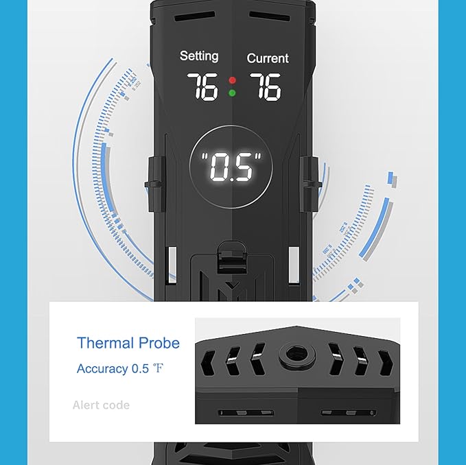 Carefree Fish 100/200/300/500/800W Paladin Aquarium Heater PTC Ceramics Heating Rod Digital LED Intelligent Leaving Water Automatically Stop Heating System for Freshwater and Saltwater No Cooking Fish