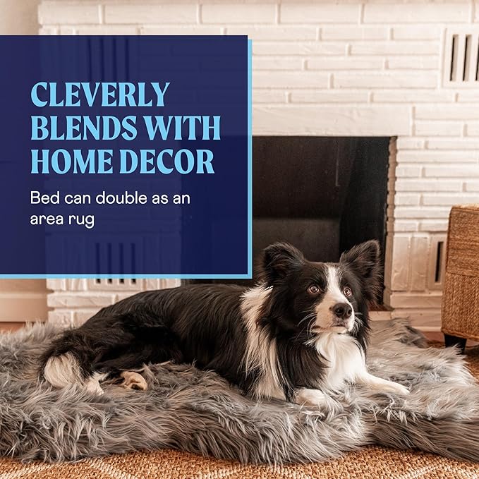 PupRug Orthopedic Dog Bed for Large Dogs with Fluffy Soft Faux Fur and Memory Foam for Joint Pain Relief, Machine Washable and Waterproof Couch Bed, Charcoal Grey, Large/Extra Large
